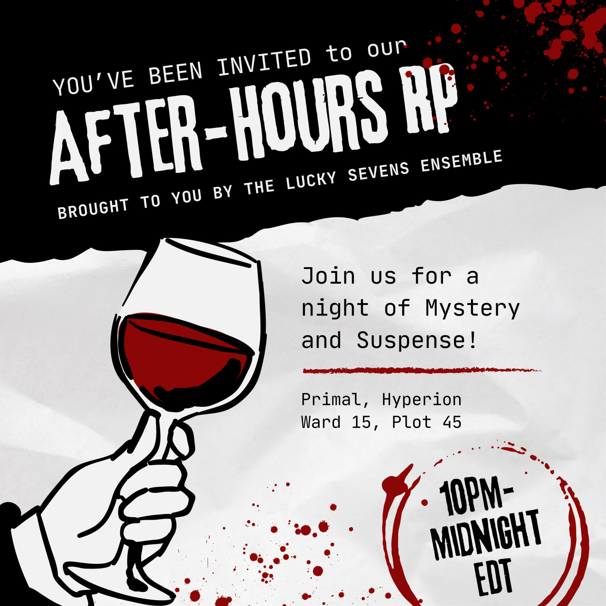 The After-Party (Part 1 & 2):You have received an invitation to an after-hours party at the Lucky Sevens Casino & Gentleman's Club. While your name is correct in the letter, there is no sender information, let alone what the invitation is for. Upon arriving to the Lucky Sevens, it seems that Benjamin (one of the casino's workers) did indeed send out a single invitation letter, yet the person they invited never arrives. Cealenas seems very interested in those who enter, asking various questions to all those who enter. Nelliel seems to be unconcerned, rather opting to play some quiet music every so often as well as enjoy the open bar. Eir, who had originally organized the small gathering, is nowhere to be found.As people begin to walk in, there is an ever-growing feeling that you are being watched. Strange sounds are echoing throughout the casino's interior, and we aren't quite able to pinpoint it. Benjamin has quickly begun to panic, and Nelliel continues on as usual. It is up to you and Cealenas to discover what is going on within the casino.Where is that sound coming from? Who invited you all here this evening?<< This is a full GROUP-RP event. All those who enter are subject to interaction. >>
